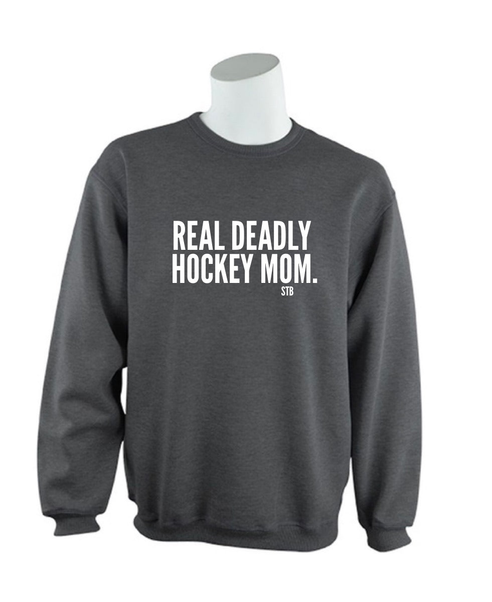 Real Deadly Hockey Mom Crewneck- Dark Grey