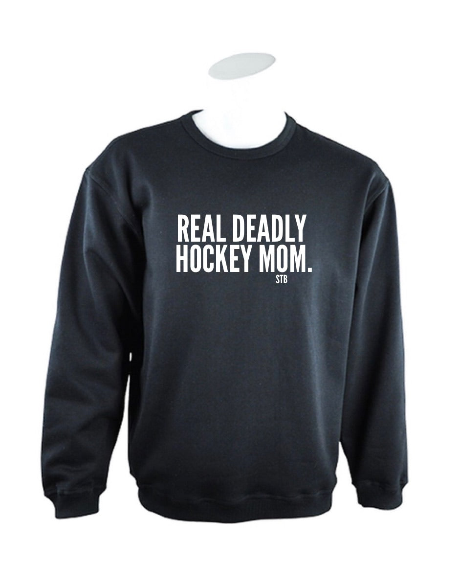 Real Deadly Hockey Mom Crewneck- Black