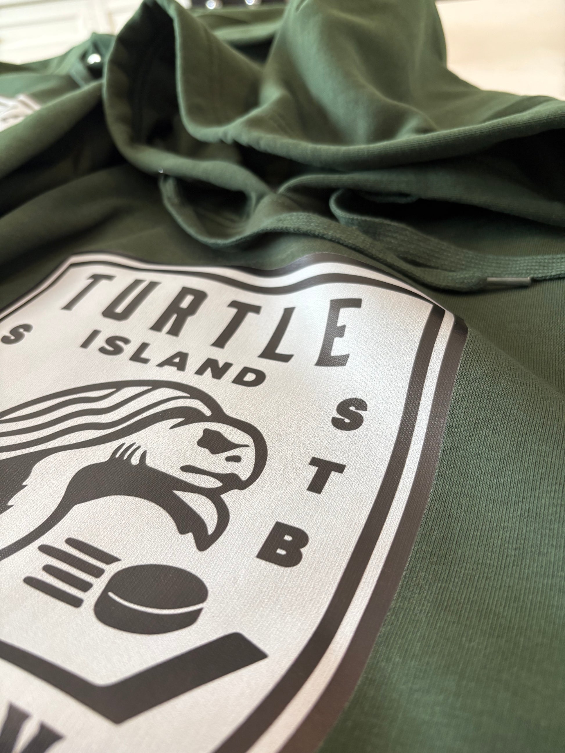 Turtle Island Hockey Hoodie- Green ( White logo )